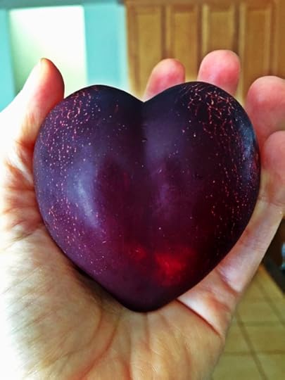 Heart-shaped things–in this case a goddamn delectable plum–will forever make me think of whiteelephantintheroom. Love you, Tré!