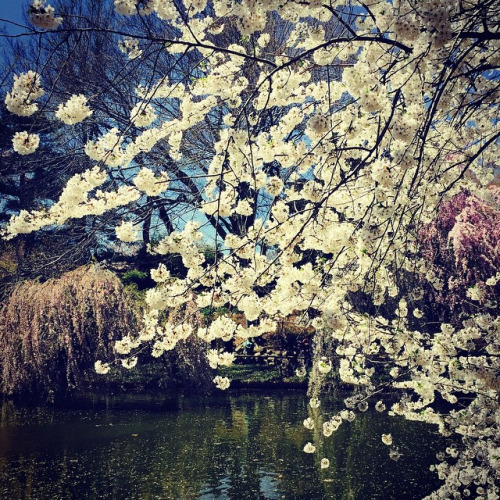 Popping my cherry at Brooklyn Botanical Gardens. To extend the metaphor, the experience was both remarkable (surrounded by weeping willows with tissue-paper blossoms) and rather disappointing (um, that’s it?). #latergram #SakuraMatsuri (at Brooklyn Botanic Garden)
