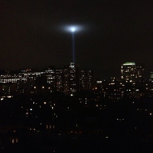 Not a UFO invasion…it’s the annual World Trade Center tribute with two beams of light sent skyward.