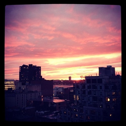 Today’s gray sky throws itself a neon party at sunset (NYC)