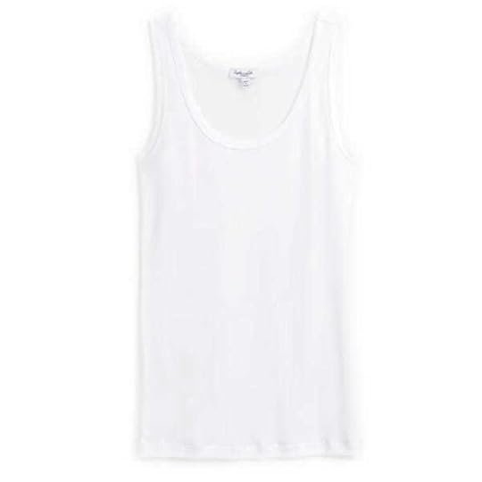 Meet this very classic tank top, thick enough to wear with a nude bra. With extremely fine ribbing, this tidy tank has good coverage.