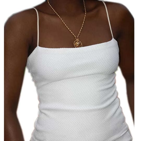 Not here to be boring, this tank top has a straight-across neckline with a menu of appetite- whetting features like spaghetti straps and a waffle texture. She’s a fancy dish and knows it.