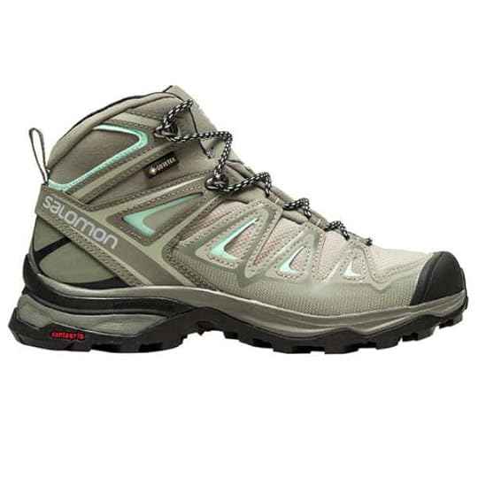 Good hiking boots will protect your ankles, especially when you walk down uneven, rocky trails. It’s a personal preference as to what brand fits you best, but you can’t go wrong with Salomon for a starter boot.