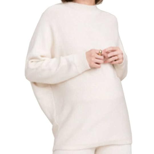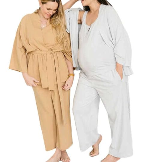 Here’s Jia’s tweet. If you, too, have a bun in the oven, might I suggest these knit pants on sale at HATCH, with a matching sweater for good measure? Or ribbed maternity leggings, built for your bump? These aren’t technically maternity leggings, but I hear that if you size up by one size, they’re perfect. These joggers are suitable for pregnant and non-pregnant women alike, too. And here’s a breathable linen shirt/shorts set you can wear throughout the summer (the shorts are elastic waist). What else do we have here…? These cashmere ribbed shorts that’ll stretch over your bump, plus a matching hoodie! And this is a three-piece lounge set that I may buy, even though I’m not pregnant. Someone else told me that these Naadam cashmere pants (on sale) and these OV joggers are great while pregnant and after. Also from Naadam: Might I suggest a knit cardigan dress? Button the top buttons and let it drape over your bump like it’s peaking out of a blanket.