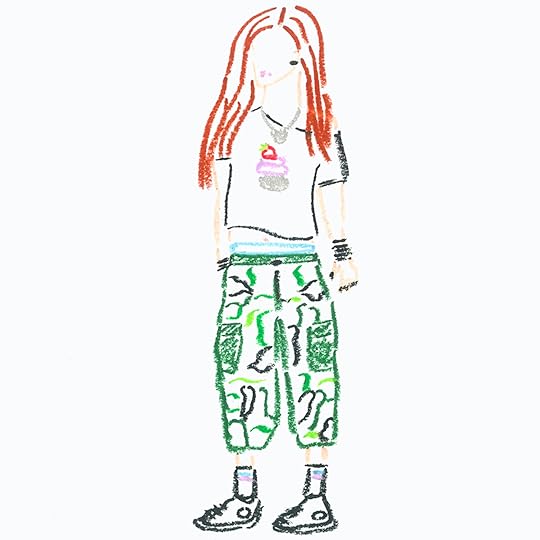 Pants were utilitarian during this phase: a loop on the thigh for a hammer I’d never use, giant pockets, lots of grommets for bondage straps and chains. Every mother’s dream. Shirts were emblazoned with the logos of skate brands (I did not skate), band names (never to be worn to see said band, of course), screen-printed 1980s cartoon characters or all-black with something sarcastic in white writing, like “I see stupid people.” I stacked a million rubber bracelets up my arms from wrists to elbows but accessorized with one belt, and it was covered in pyramid studs. My black Misfits sweatshirt had holes in the sleeves for my thumbs to stick out of. Lyrics written in Wite-Out covered my backpack — this was just pre-AIM profile. Pink Rocket Dog sneakers completed the outfit, or Chuck Taylors. And I was punk, not goth, DAD.