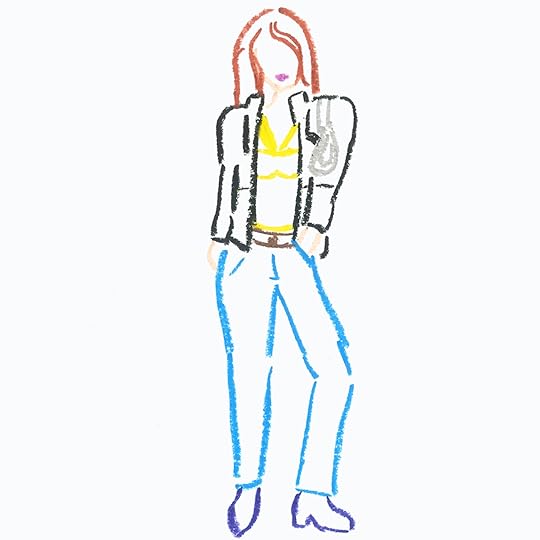 Natasha Zinko blazer, Kule T-shirt, Vetements jeans, Church’s loafersIt’s raining, but if I have to see another sweater, I’m giving up my passport and moving to the sun. I put on high-waist white jeans with a striped T-shirt and a Pepto-pink blazer. I hate how I look. The clothes are wearing me, I’m not wearing them.