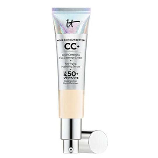 My routine and look are completely different during the week vs. weekend. I have full face makeup and fake lashes on five days a week–and I have to shout out Chelsea, my makeup artist at NY1, who has seen and heard it all about my skincare routine. She has laughed at so many of my wild treatment ideas and crazy product purchases that we talk about at 3:30 a.m. in the morning, but also so efficiently and beautifully covered so many problem spots of mine over the years. So I try as best as I can to use as little makeup as possible on the weekends. My face needs a break! I’d love to get to a place where I don’t need any makeup on the weekends, but my cheeks are still a bit red and discolored, so I’m in the market for a great tinted moisturizer–send me your recs!–and in the meantime I use the foundation we use for TV: IT Cosmetics CC Cream. I just use a dot of it, mostly on my cheeks, then I fill in with Clé de Peau concealer and dab a wet beauty blender all over to make it dewy-looking. A little bronzer, a little mascara, and I’m done. With two kids, the weekend get-ready routine has to be lightning fast.