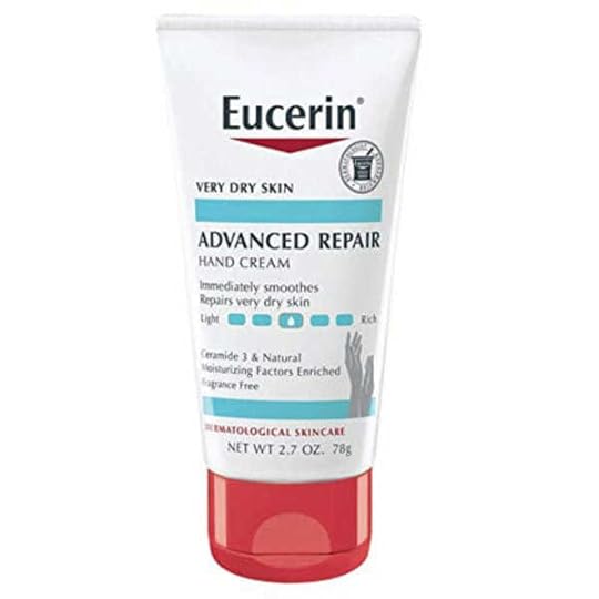 My makeup artist Chelsea got me (and our whole morning team at NY1) hooked on Eucerin Advanced Repair Hand Cream. She stocks it in our makeup room and everyone who knows is always grabbing for it. It’s the best. Super moisturizing with zero residue. I buy it in three packs and keep one in my bathroom, one in my work bag, and one by my bed.