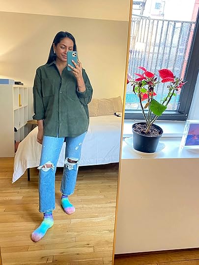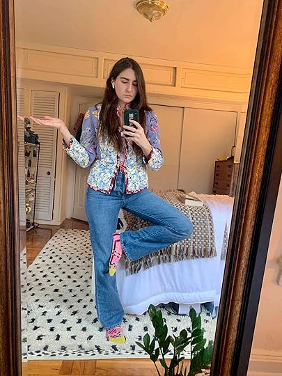 I’m tired of dressing in sweats (for today). I’ve been the one on every Google Hangout with her hair splayed in a knotted bun, no bra, and a ratty T-shirt from my PJ drawer, stained with lunch. It was time to give the work week the dignity it deserves. I opted for the softest denim in my closet (scored this pair from Poshmark) and wore it with a tank top and STILL NO BRA! (My mom is mad. “Keep the girls up,” she always said.) Anyway, I’ve really been feeling spring on all my long walks, seeing the cherry blossoms open early for us and the snow-white Callery pear trees lining the streets in Park Slope. I’ve had this floral quilted blazer in my closet for months and finally felt inclined to wear it. I put blush on my cheeks and washed and combed my hair. Added a clashing sock. I’m comfy all day, and somewhat professional. A win-win-win during a series of days that never feel like wins.