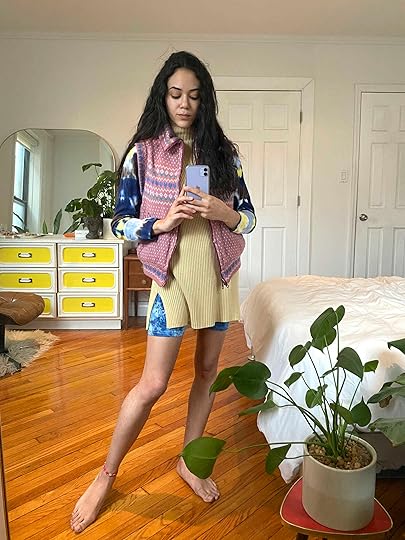I went on a walk at 6:25 a.m. this morning in my pajamas. I saw one person, about twenty-feet away from me, which I was thankful about for reasons beyond the fact I was in my pajamas. The difference between pajamas and day clothes is beginning to blur so much that when I do get dressed, it feels like a small win. Getting dressed, even just to take a selfie or have a video call (which I don’t always do, sorry coworkers) simply keeps the muscles moving in the shit I own. And in my creative brain! Today I had two video calls and did floor exercises in front of my mirror, so I saw myself and I wanted to see ME, not a shell of me wearing mismatched pajamas to avoid my building’s communal laundry room. When I put on something as simple as a headscarf or necklace, I’m legitimately happier all day. And right now, seasons don’t matter as much, so I can wear items like I did here (shorts and a sweater) with added said headscarf and necklace as if it’s a perfect 72-degree day of Office Apropos when I didn’t even realize the value of a sidewalk photo.