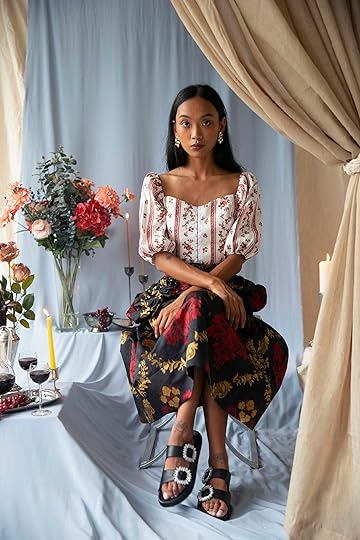 Certain brands, such as Simone Rocha, Brock, Markarian, and most recently Khaite, have been promoting this aesthetic for multiple seasons now, their collections an ode to all things brocade, velvet, cinched, and pearl-encrusted. But it was arguably Prada’s Spring/Summer 2019 show, wherein headbands so regal and puffy they could conceivably cushion a sore neck on an airplane abounded, that spread it on social media like wildfire. A number of contributing variables helped fan the flames: The fashion industry’s answer to the waning prairie dress trend, i.e. cotton frocks reminiscent of 16th-century peasant attire from brand like Dôen and Reformation (not to mention a consumer base that has been thoroughly acclimated to costume-adjacent daywear). The increasing popularity of positively Shakespearean blouses with billowing sleeves, rendered in casual form by Instagram-savvy brands like MaisonCléo, but also notably appearing in more fanciful iterations on Christopher Kane and Roksanda’s Fall/Winter 2019 runways. And finally, a burgeoning interest in corsetry-inspired belts, tops, and even skirts, thanks to cutting-edge brands like Orseund Iris and Kim Shui.