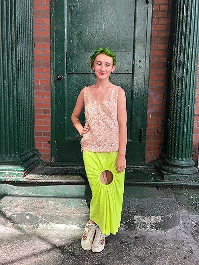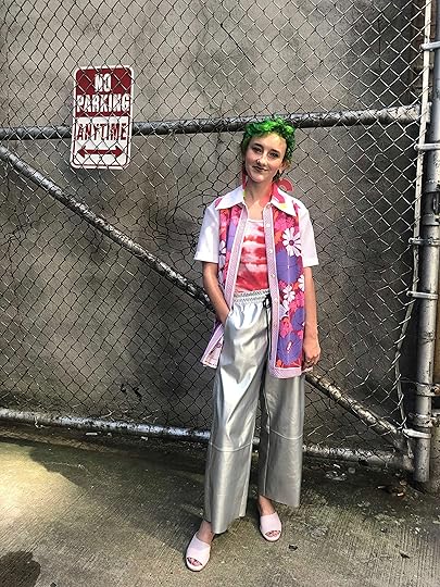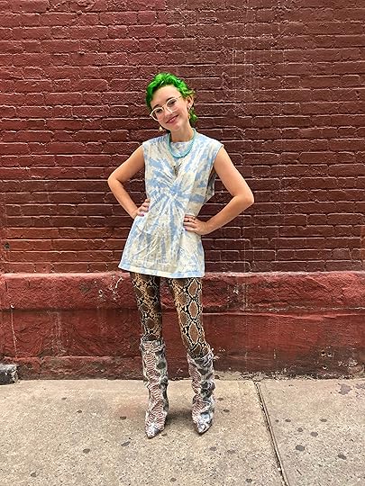 This was my first day with green hair so I was feeling good!! I wanted to be seen! And what better way to do that than with as many patterns as possible? I typically don’t wear snakeskin or fur or anything because I’m a big cruelty-free person, but when I do, it’s always synthetic, and I try to make it as ridiculous as possible. A snakeskin shoe is extravagant but pants and shoes is absurd. Which is exactly how I want to look 87% of the time.