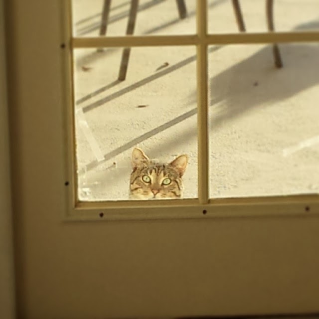 He wasn't a solicitor. He was a mooch.I’m not sure where the little guy came from and to be honest, I’m not sure it’s even a little guy. We call him Blue Eyes because he has the prettiest blue eyes and I was listening to Frank Sinatra at the time. He’s not ours. I do think he thinks we are his, however.He appeared around our pool deck one day just staring at us. One of the girls put out a bowl of food by the back door and we watched through the glass as he came up, sni...