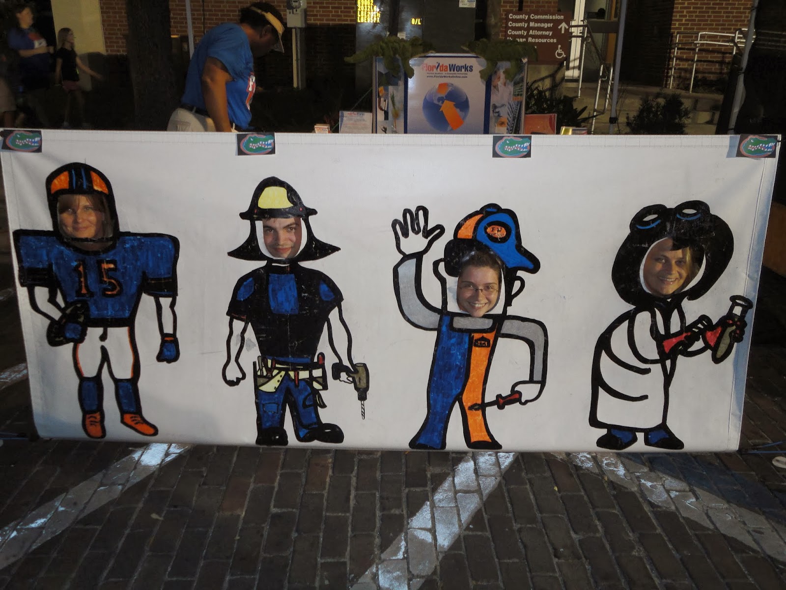 Char, Chris, Heather, & Sarah at the festivalWe had planned an overnight trip to Gainesville to visit our two college kids. At first, it was just a day trip, but I decided that we might as well make the three hour trip the night before and just get a room at a cheap hotel that way we could spend more time on Saturday with the kids. It was last minute, and yes, there was a game that weekend, but I was sure we could find something without spending an arm or a leg. Usually...