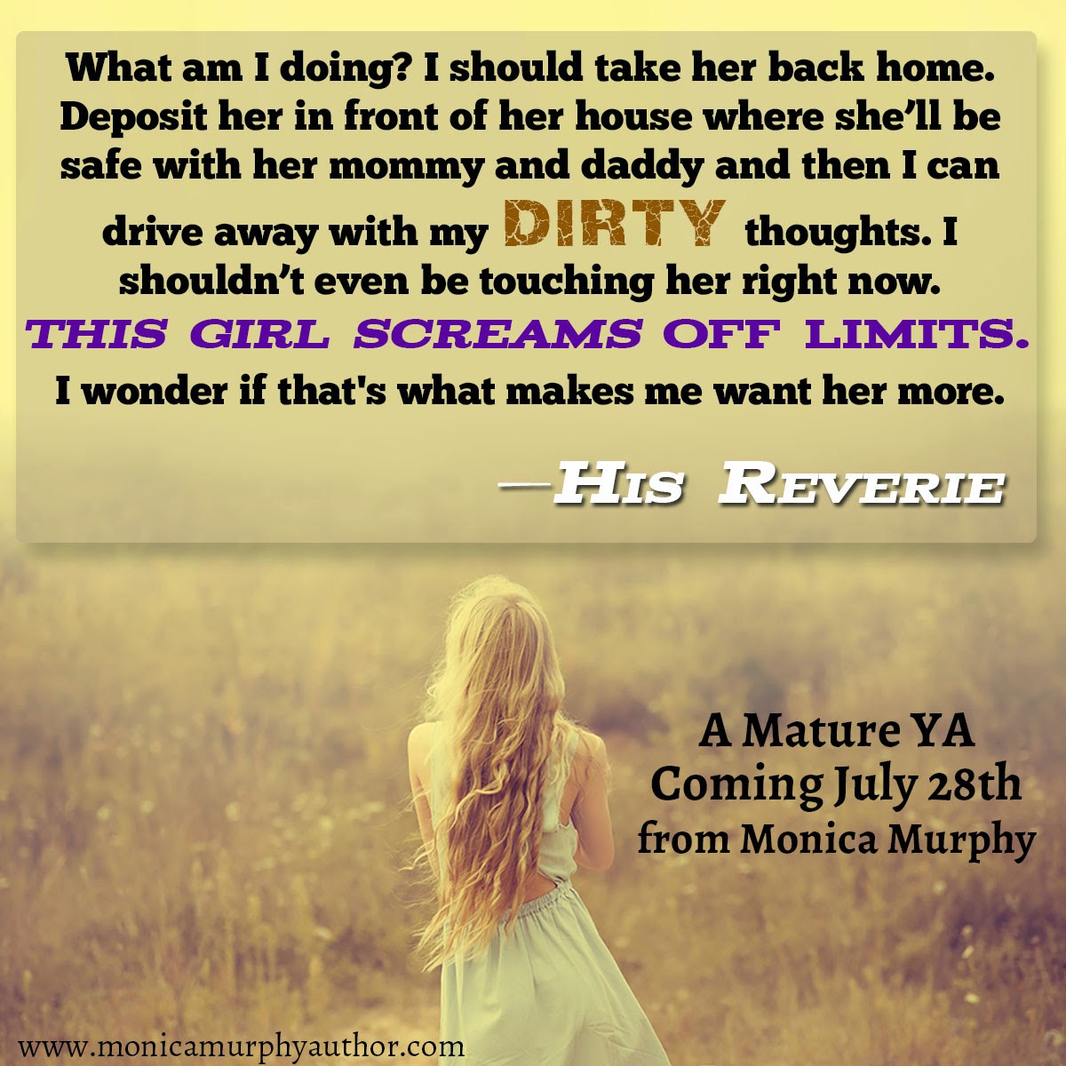 He inches his face towards mine, and I too edge forward, so not in control of my actions right now, because kissing him is the only thing I can think of. But then I remember he’s drunk, and this kiss will be meaningless in the morning.Pulling back and shaking my head, in hopes of knocking some sense into my lust-filled brain, I whisper, “You’re drunk, Jasper.”