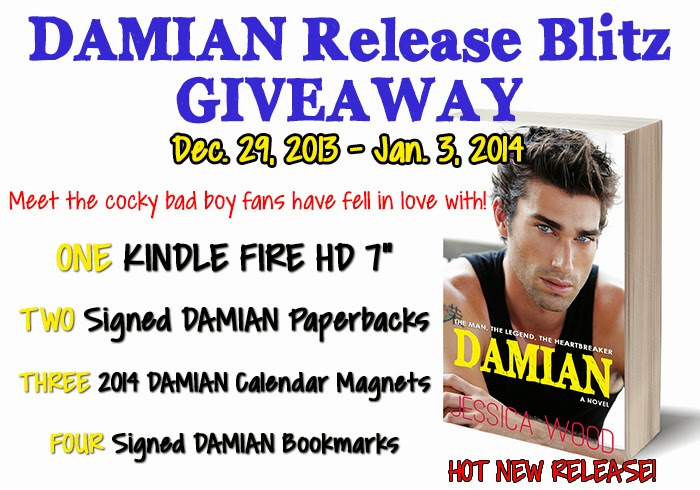 Looking for a book with a super sexy bartender - the perpetual bachelor, who may just have met his match? Then Damian by Jessica Wood is the book for you. Read on for a teaser and be sure to enter the amazing giveaway.