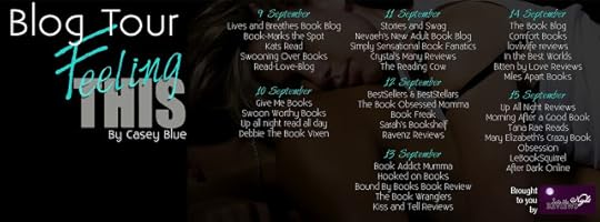 It's been a fabulous tour for Feeling This by Casey Blue with an awesome line up of blogs participating and supporting this sweet story. Thank you so much to everyone that posted, visited and hopefully purchased during the tour!