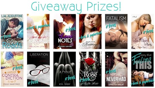 Ebook of Two Roads by L.M. AugustineEbook of Tied Up in Heartstrings by Felicia LynnPaperback of Tied Up in Heartstrings by Felicia LynnEbook of Love Notes by Heather GunterEbook of Heartstrings by Heather GunterPaperback of Heartstrings by Heather GunterEbook of Fatalism by LK CollinsEbook of So Much It Hurts by Melanie DawnEbook of Sweet Contradiction by Peggy MartinezEbook of I Have Her Liberation and SWAG by EL LeaEbook of Fading by E.K. BlairEbook of Every Rose by Lynetta HalatEbook of Everything I Never Had by Lynetta HalatEbook of Feeling This by Casey BluePaperback of Feeling This by Casey Bluea Rafflecopter giveaway