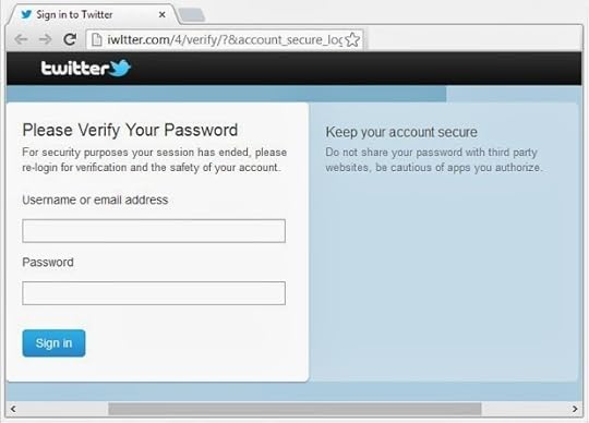Let me be clear: I am not warning anyone away from clicking on links on Twitter - there is a lot of cool stuff to be found by clicking twitter links - such as my books in many of my own tweets! But DO NOT sign in after you have clicked a link.