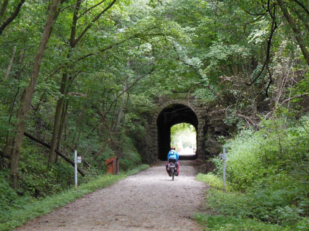 After our dark ride off the Katy Trail and over the Missouri River last night, we were sluggish on short sleep this morning. We cycled to our intended morning stop: a bike shop on the other side of town. My rear tire was again in need of replacement. When you carry a lot of weight on a touring bicycle, the rear tire takes a beating, particularly when you are also tra...