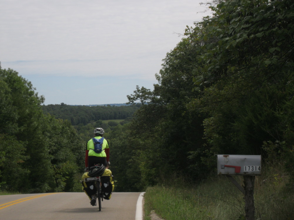 Today, we faced the toughest road we have faced for weeks. Route 185 from Sullivan to Potosi, on the edge of the Ozark region, lived up to its billing. A local named Carl at Dairy Queen in Sullivan had briefed us on its dangerous elements the prior day and spared us from a headlamp ride on a perilously unshouldered road with poor sight lines and absolutely no services. This ride also came with a backwoods feel to it, heavily foreste...