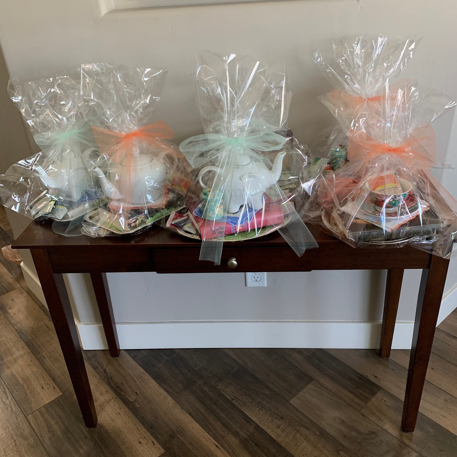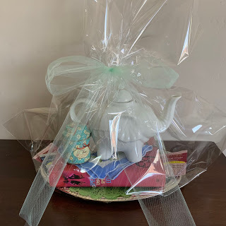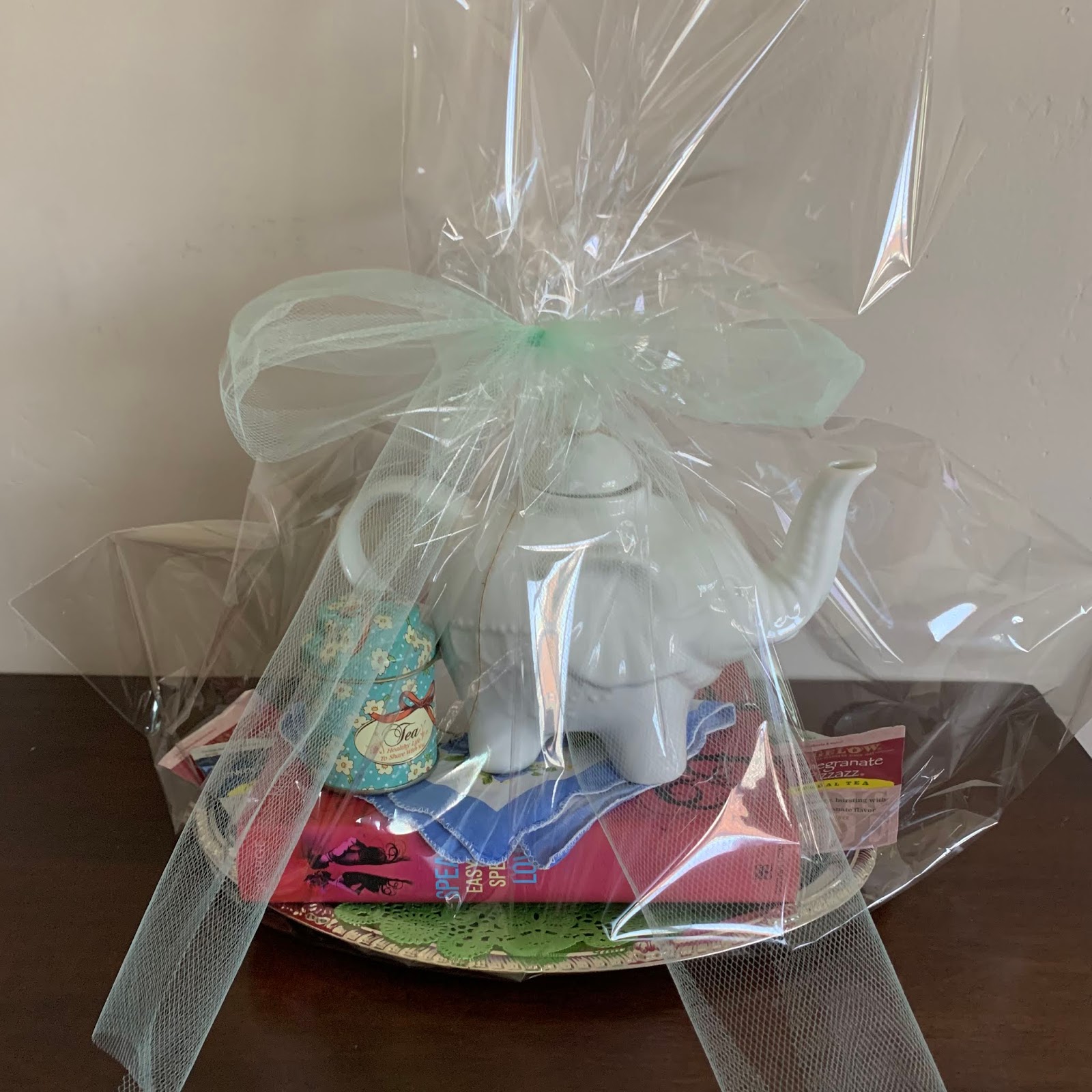 Then I'm going to raffle my favorite things, but I promise that I won't sing. I have seven trays full of books, tea pots, tea cups, quills, handkerchiefs, tea tins, and more.
