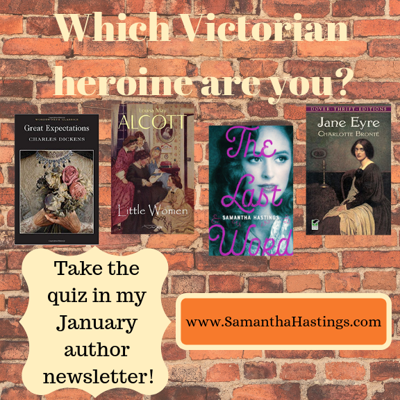 It's not too late to sign up for my newsletter and receive the January edition with this fun quiz: Which Victorian heroine are you?