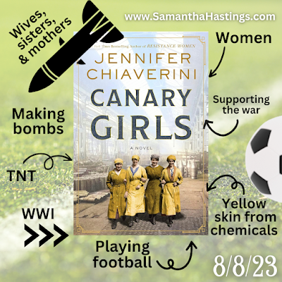 A fascinating story about female munition workers during WWI who also played football (soccer); they were called the Canary girls. There are three POVs and they are all compelling. April is young and joins the factory for better hours and pay then being in service. Lucy’s husband is a soldier and she works to be able to keep their home and meet the bills. She will also do anything to bring her husband home and hopes her contribution makes a difference. Helen’s father was German and she’s a suffragette. She marries Mr. Purcell whose father owns several factories. One of which is converted to munitions. The TNT in the bombs turns the women’s skin yellow and bleached the color from their hair. Some munitionettes even died from blood poisoning. The characters and their lives are fascinating. The author truly brings this time period and these incredible women to life. A must read for all historical fiction fans. Don’t miss the author’s notes at the end. They are fascinating!