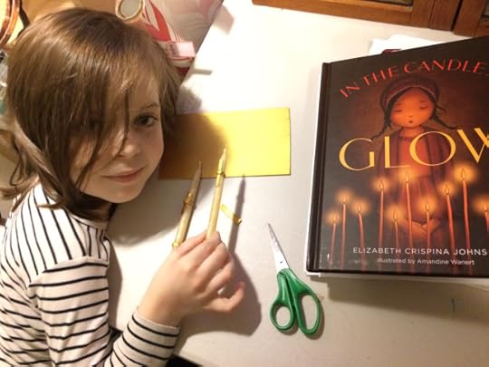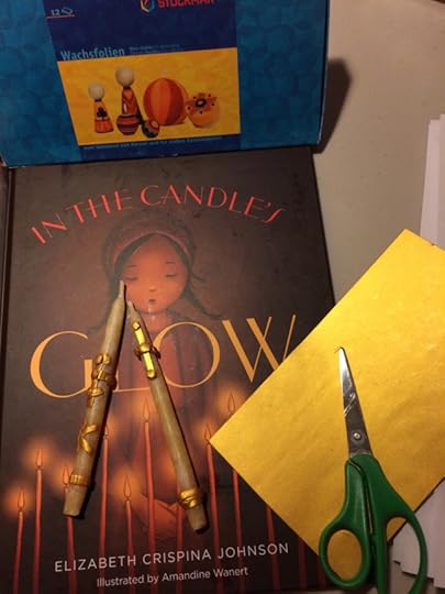 Here’s my daughter with the first prayer candles we decorated after reading the book. As we pressed the wax, we talked about how kindness and love make us even more beautiful to God.