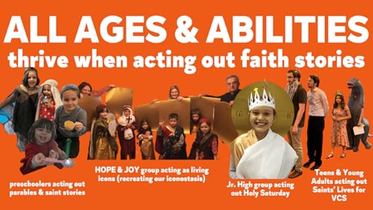 One of my favorite teaching moments last year was at a workshop with an amazing group of teachers near Chicago. One of the women present was a venerable mother and grandmother of the church who spoke little English but whose patron and name saint was our Panagia (the Holy Virgin Mary, Mother of God). When we got to the part about adding beautiful props for teaching saints’ lives so that girls as well as boys could look like the icons we venerate, I revealed a beautiful queen crown to show what I meant. I asked if anyone was named after Mother Mary, and everyone nodded towards the venerable lady. She consented to try on the crown. At that exact moment, sunlight flooded the room and lighted her. With her silver hair and the God-honoring crown, she WAS an icon. We were all struck speechless by the beauty for a moment. I could have said a million ways that we are living icons, but when that venerable grandmother consented at her daughter’s urging to try on the crown to help teach us, and God lit her with sunlight, everyone understood perfectly. To imitate the saints is all of our goal. When we teach, we honor them by showing the students that they, too, are living icons.