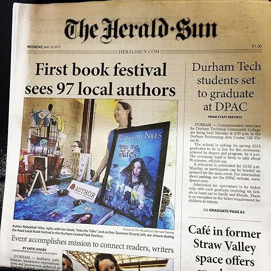 The table I shared with Rebekkah Niles was beautiful. We even made the front page of the local paper, the Herald Sun, on Monday (see below for a meta moment). It was great seeing Rebekkah shine at the first signing of her debut novel!