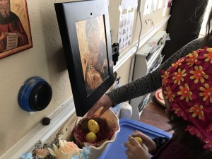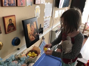 Place the nest under your icons, and have the children add the eggs to the nest as a way to pray for the people in the photos.