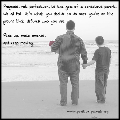 Progress , not perfection, is the goal of a conscious parent. We all fall. It’s what you decide to do once you’re on the ground that defines who you are.