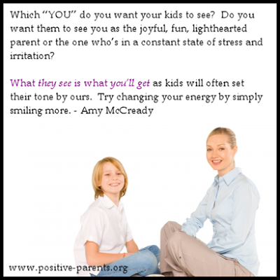 9. Watch your energy. Which “YOU” do you want your kids to see? Do you want them to see you as the joyful, fun, lighthearted parent or the one who’s in a constant state of stress and irritation? What they see is what you’ll getas kids will often set their tone by ours. Try changing your energy by simply smiling more. It will help you remain calm in times of stress, and your kids will notice and keep their behavior more positive as well.