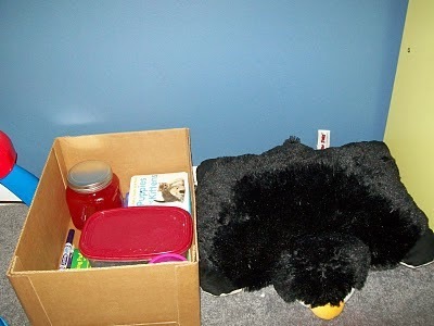 In the calm down area I used, I had a comfortable pillow to sit on, a few books, some colored rice, and a "calm down jar." The purpose of this area is to get your child's brain regulated. If you're familiar with the brain, you understand that aggression happens because the child's alarm is tripped and information gets sent to his lower brain where the fight, flight, or freeze reflex is housed. He cannot, at that time, access his thinking (higher) brain. So, the calm down area is much like an adult going away to take some deep breaths before dealing with a situation. It's simply a place to calm down. Once calm, higher brain functions can be reached, and the child can be taught better skills.