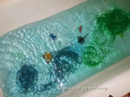 My boys loved this wild and wacky bath! They ended up stringing the noodles all over themselves to become swamp monsters!
