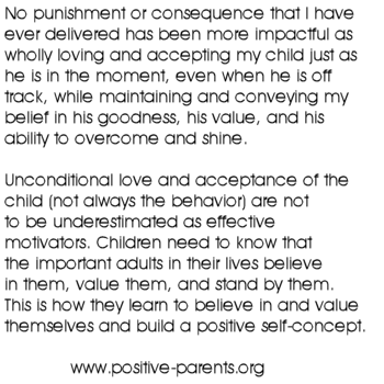 Finally, whether a consequence is needed or not, it is invaluable to our children to convey to them our belief in their goodness, in their value, and in their ability to overcome whatever they are dealing with and shine. Our consistent belief in them is how they build a consistent belief in themselves, and that will benefit them for a lifetime.