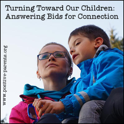 According to Gottman, a bid is an attempt to get attention, affection, or acceptance. It is a bid for emotional connection. “Will you play with me?” is an obvious bid, but not all bids are so clear. Therefore, it is good to familiarize ourselves with what bids are and to be mindful, being on the lookout for what our children say or do that may be a bid for connection. How we respond to these bids has a great impact on the connectedness we share with our loved ones. There are 3 responses to bids: positive (turning toward), negative (turning away), and no response (turning away).
