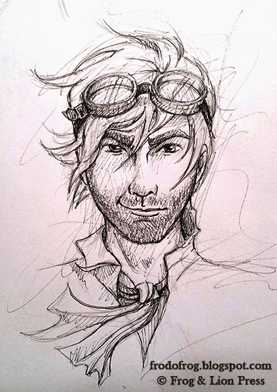 from our new book, Sky PiratesMain characters must be dynamic! They have to learn and change, for better or worse, otherwise why do we care to read about them? The lovely lad at right is the main character in our new book, Sky Pirates. He starts as a somewhat stuffy scientist's assistant and in some threads turns into quite the adventurer. Change! It's what makes reading about a character fun. :)