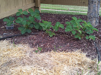 Strawberries reaching for the sun and more dirt. Lots of runners.