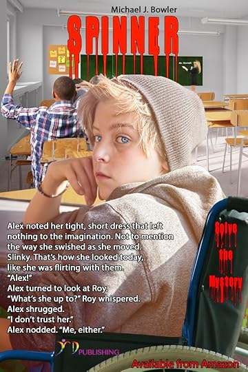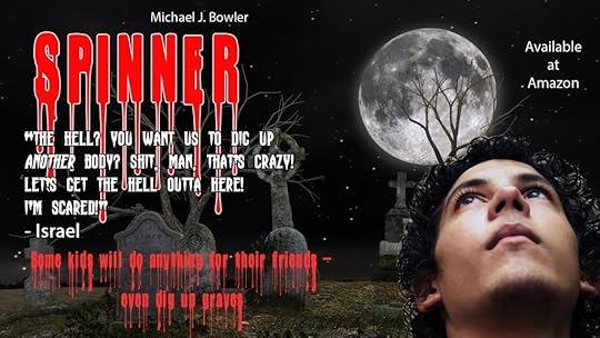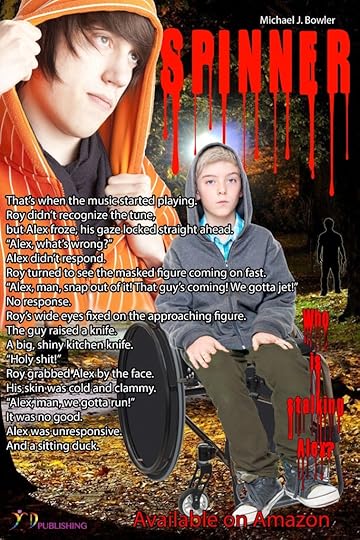 I also had to figure out how to visualize important information, like Alex’s backstory, into a format so the audience would not be bored. Turning key thoughts and feelings of characters into dialogue or action also proved tricky. Spinner is a very visual book with lots of spooky scenes (the kids creeping around a graveyard at night) and action sequences (Alex in his wheelchair hanging onto the back of a speeding pickup truck while the bad guys pursue in a car) that translated well to script format. But the supernatural “connection” Alex had with his friends, as well as his “spinning” ability, were less easy to “show,” rather than “tell.” The novel is four hundred sixty-one pages and the screenplay came out to one hundred sixty-one, so you can see I had to cut a lot, including a couple of subplots that enhanced the novel but were not essential to the script. I entered the screenplay in three competitions. It achieved semi-finalist status in one, and I’ve not heard back from the other two.