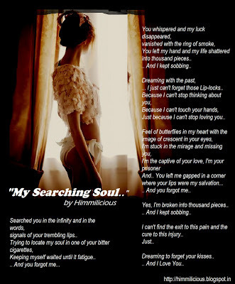 Searched you in the infinity and in the words,signals of your trembling lips..Trying to locate my soul in one of your bitter cigarettes,