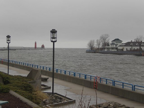 Last week, I flew to snowy Western Michigan to do a couple of short but glorious site visits with Wonder Twins librarians Cindy Dobrez and Lynn Rutan, as well as touring the offices of my audiobook publisher, Brilliance Audio (more about that later). Of course, my flights were delayed–never fly with me–due to mechanical problems, weather, and someone who got caught in the jetway. Eventually, I made it to Grand Rapids then drove across to Grand Haven, which is on the shores of Lake Michigan: