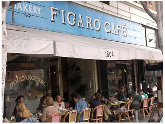 A screenwriter and actor rendezvous spot with French antics, sidewalk tables and bistro fare.