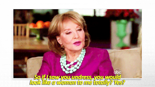 I sort of which these very polite trans people would turn that question around and ask the interviewers about their genitalia. Hey Barbara: let’s talk about your labia.