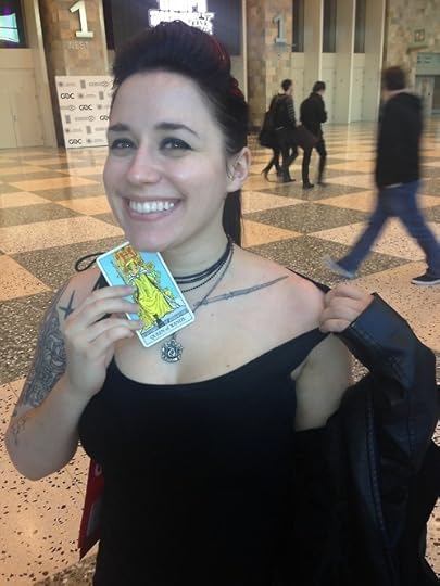 Nika is an excellent writer, and at GDC she gave a terrific Indie Soapbox speech about creativity - shortly after, I met her, and she drew the Queen of Wands. Note that Nika has a prominent tattoo of a wand…