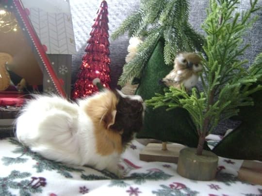 So instead, she tried to nibble on the plastic tree. Nothing here is even holiday edible, Snuffy!