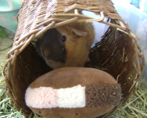 Ozma has fun in her willow tunnel with her stuffed ice cream sandwich. She sounds a lot like a tiny, soft chicken when she wheeks so I imagine it would be more fun for everyone to experience her out loud but I’m against fun, clearly. I even have a Fun Police badge.