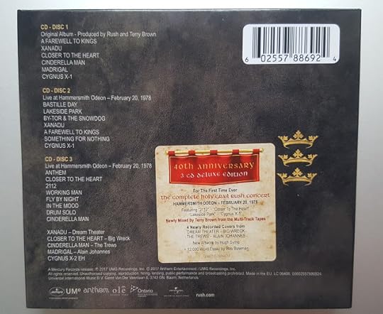 I have Rush, Farewell to Kings in standard CD format too but I decided to buy the 40th anniversary deluxe edition with live CDs (performances from 1978) and some cover versions by other bands included: