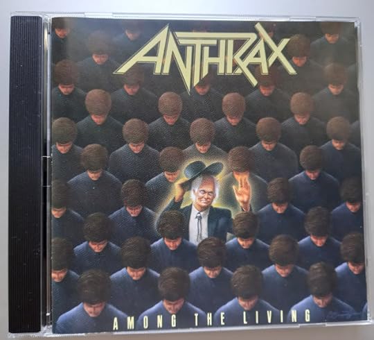 'Among the Living' is American thrash metal band Anthrax's third studio album, released in 1987. The cover art reminds me of the evil preacher in Poltergeist 2, but the main reason I selected this album is that a few of the songs are based on Stephen King's work, the title track and 'A Skeleton in the Closet'.